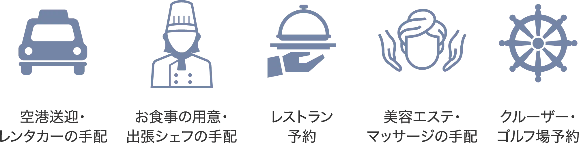 空港送迎・レンタカーの手配をはじめ、美容エステ・マッサージ、クルーザーやゴルフ場の手配など事前にお申し込みいただけます。